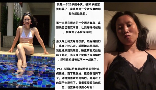 我是一个25岁的小伙,被57岁的富婆包养了,富婆是我一个做按摩的朋友介绍给我的。